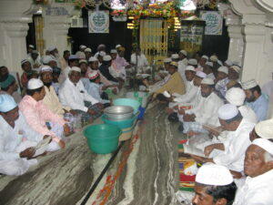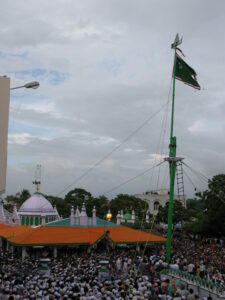 This is the final event which marks the end of a month long Santhanakoodu festival in Erwadidurgah. Every year on the 30th Morning of Islamic month of Dhu al-Qi’dah thousands of people gather at the hall of main Dargah after fajr prayer for the recitation of Holy Quran. Qur’an is completely recited more than 7 times and Tabarruk is distributed after the dhuaa with the waseela of Badhusha Nayagam (Holy King). The same day evening, after Asar Qasidas and Byts are recited followed by the grand final Dhuaa and the Holy Flag is dismounted with the Sky blowing slogan of YAA SHAHEED!!! MURAD HAASIL!!!. The holy flag is presented unto the Sacred Rouza of Hazrat Sulthan Syed Ibrahim Shaheed and a Dhuaa is recited. The lower trunk and other components of the Holy flag are displaced before maghrib. Around 15 lakh people from all over India and other countries like Srilanka, U.K., Saudi Arabia,U.A.E. and Kuwait take part. The crowd which gathers here for this ceremony is the highest than any other festival in Ramanathapuram District. After maghrib, the traditional Thabarruk of ‘NEI SORU’ (Ghee Rice) is distributed to all the 15 lakh pilgrims who witnessed the Santhanakoodu Urus festivals of Erwadi Dargah. The arrangements for the entire festival is made and sponsored by the Dargah Huqdhar Management Committee (D.H.M.C.). Thus the one month long Urus Festival of Ervadi Durgah Shariff comes to an end.