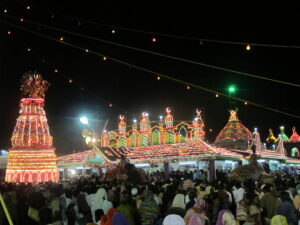 This procession is conducted just to mark the beginning of the Main santhanakoodu festival. Procession starts from Ervadi Kudi iruppu, the residential area of Mujavirs (Huqdars called as Levvais) and reaches the Dargah shariff campus before maghrib prayers. The shadhili tariqa zikr halqa majlis (Hazra) is held in the Mosque at the durgah campus. A few millions of people start gathering at Erwadi and get scattered at kattupalli and other areas of Ervadi durga. District administration announces local Holiday on this day and the State government along with TNSTC runs thousands of special buses to Erwadi from various locations of Tamilnadu. Hundreds of stalls are being put by the Government and by the private vendors. Many food stalls and Child Entertainment games are being run in this season.